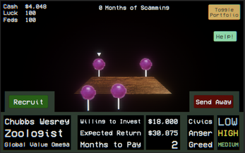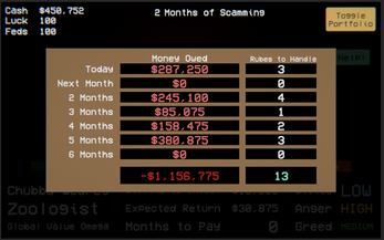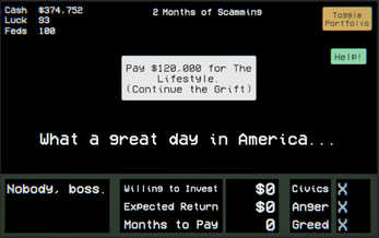 198X - Omni-Reagan has deregulated the financial markets. You are Mr. Opportunity, and the American People are HUNGRY for gobs of cash. Get out there, be the wolf you are, and dupe these suckers for all they're worth.